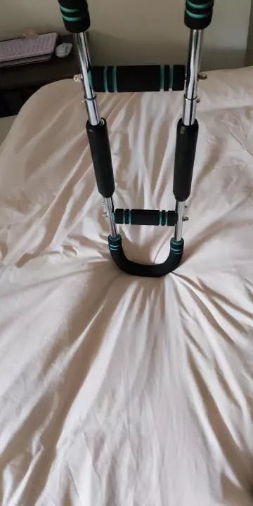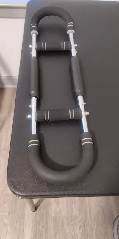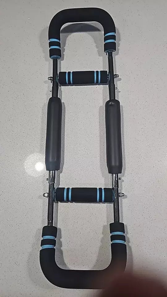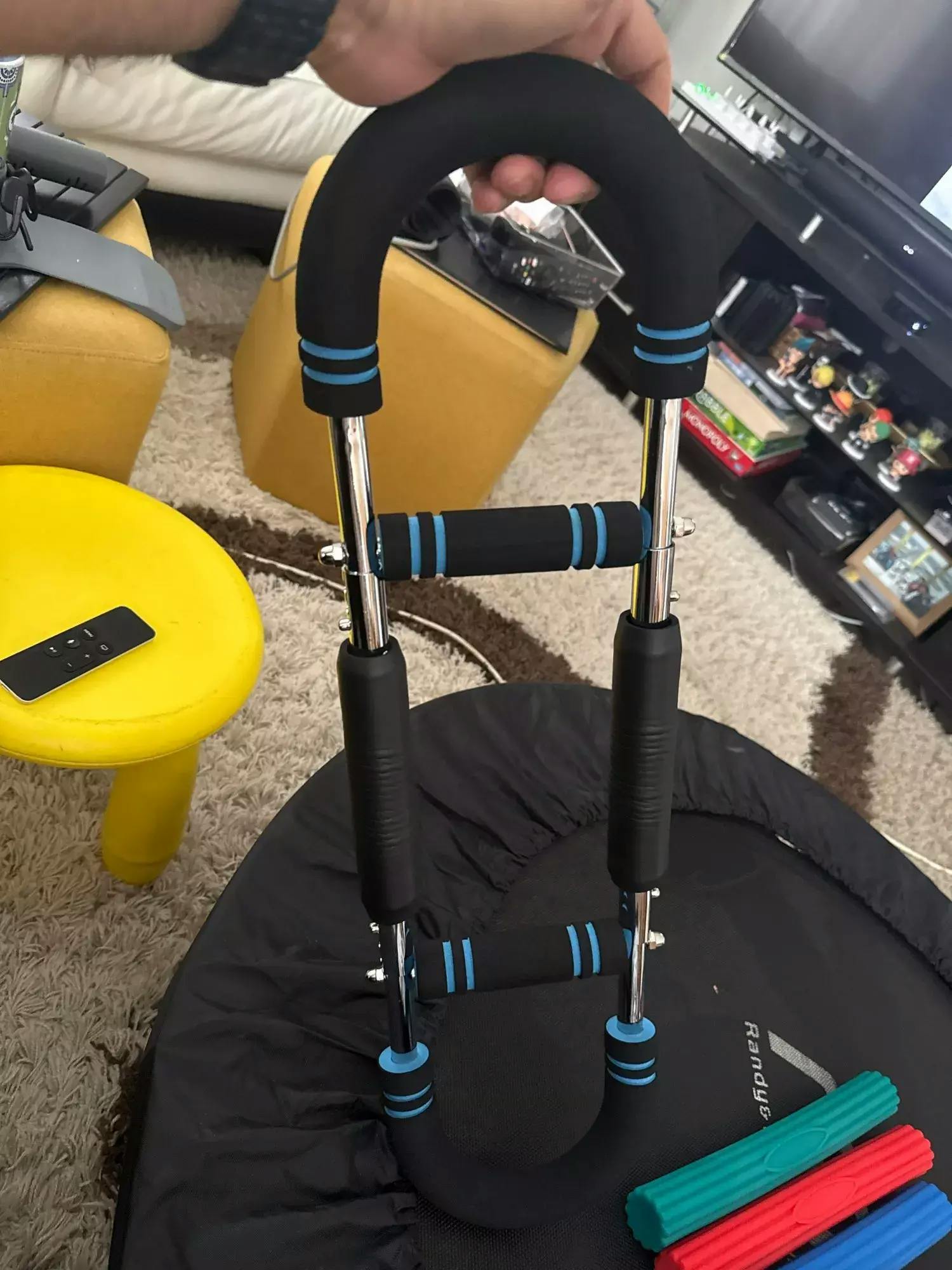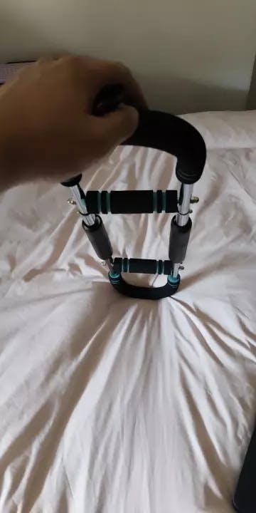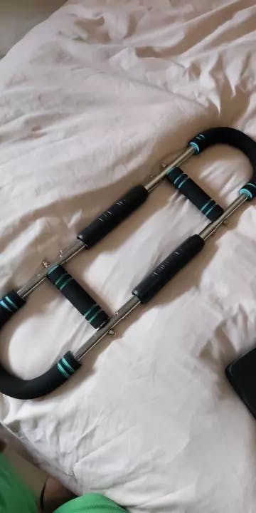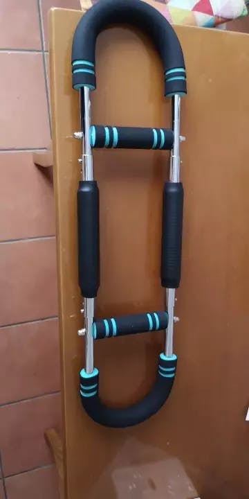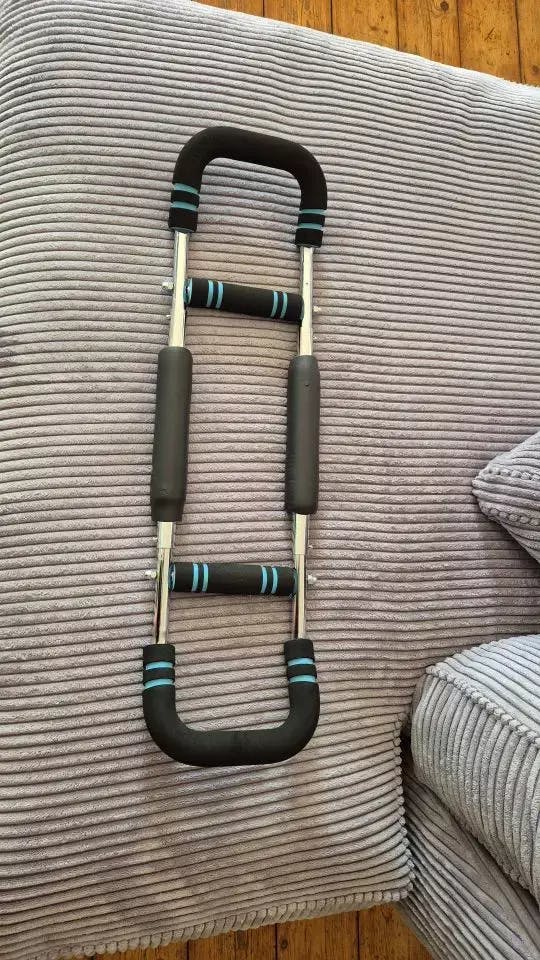 A: Das ist super einfach und clever gelöst. An den Griffen findest du einen robusten Verstellmechanismus. Durch Verschieben der Griffe kannst du die Feder verkürzen oder verlängern und so ganz einfach zwischen den drei Stufen – 30kg, 40kg und 50kg – wechseln. Das Ganze dauert nur Sekunden und rastet sicher ein.