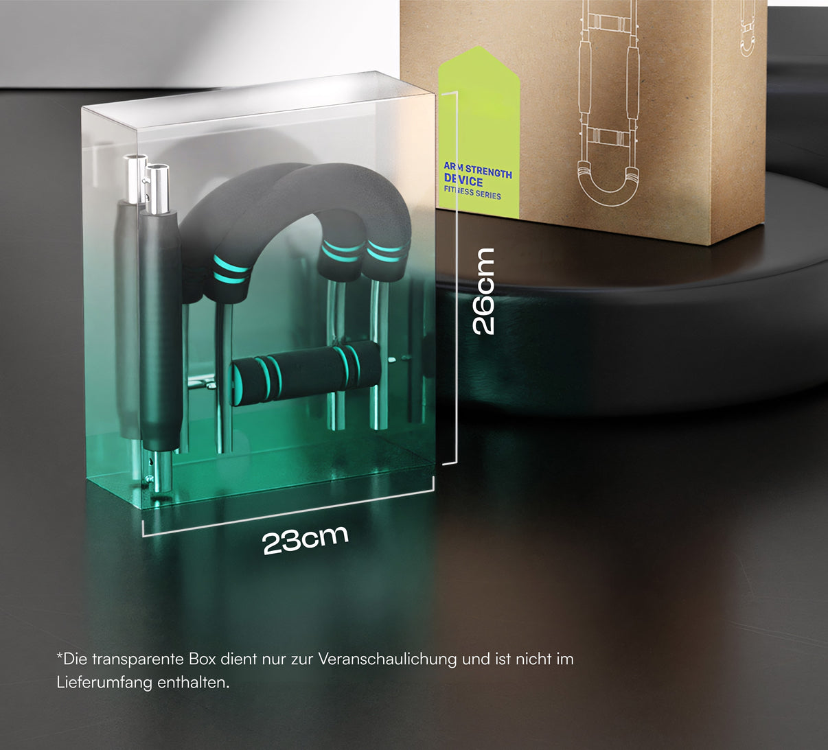 A: Sieh ihn als dein persönliches, portables Oberkörper-Studio. Formstark™ ist ein premium Krafttrainer, der eine traditionelle Biegehantel neu erfindet. Dank seiner smarten 3-Stufen-Resistenz (30-50kg) und einer ultra-sicheren, gekapselten Doppelfeder, ist er das perfekte All-in-One Tool für Brust, Arme, Schultern und Rücken.